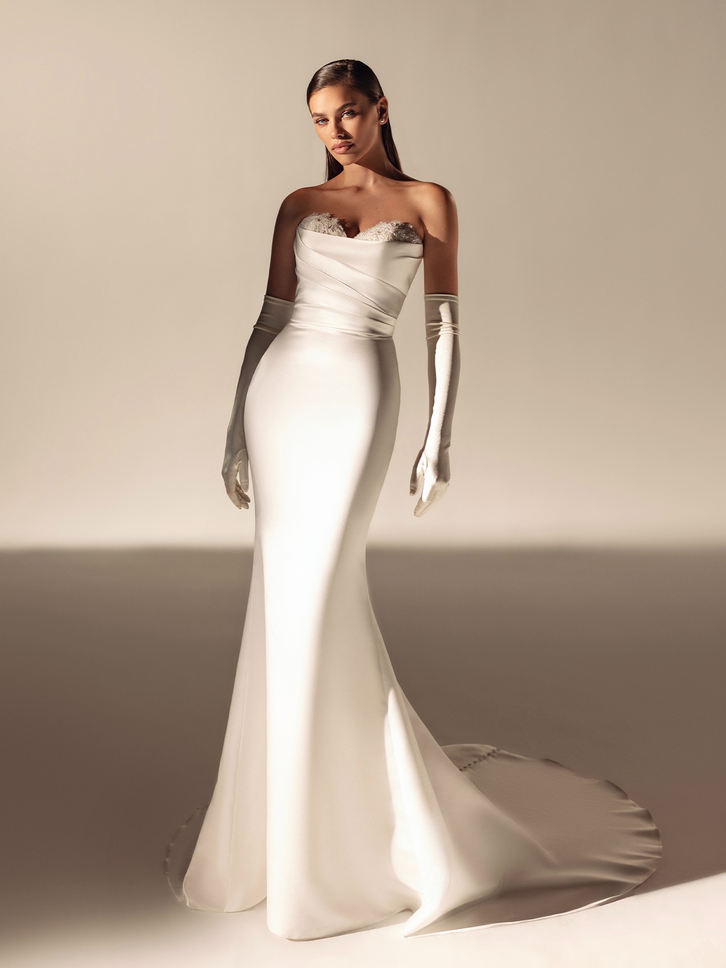 LUNEL Elegant Wedding Dress - Sheath Chapel Train Sweetheart Neckline with Lace Detail Bridal Gown