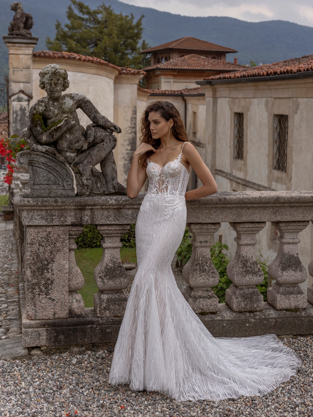 Overall, this TANGO Tulle and Glitter Lace Mermaid Wedding Dress is a truly magical choice for any bride who wants to feel confident, beautiful, and unforgettable on her wedding day.